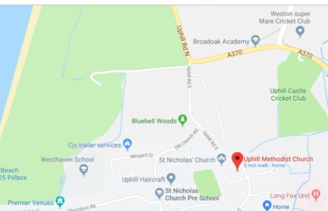 For SatNav and Google Maps use our postcode BS23 4SD or search for Uphill Methodist Church. Parking is on the street though there is a small space for unloading by the side of the chapel.